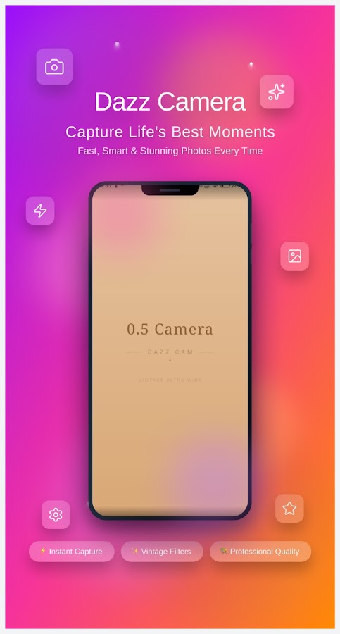 Измените свой подход к съёмке фотографий с 0.5 Camera Dazz Cam, лучшим приложением для Android, разработанным как для любителей, так и для обычных пользователей. Запечатлеваете ли вы повседневные моменты или создаёте снимки профессионального качества, 0.5 Camera Dazz Cam сделает это быстро, легко и увлекательно.
