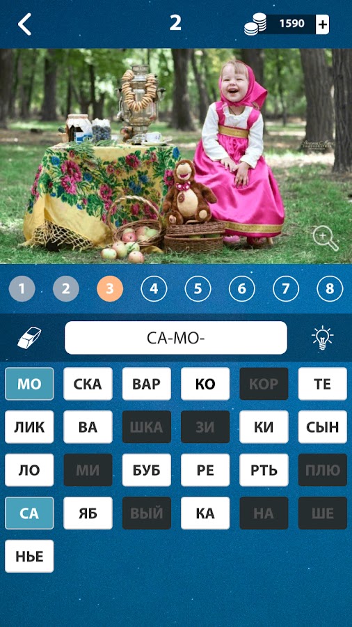 Для усложнения в некоторые уровни добавлены лишние части слов. Если возникнут сложности, не стоит волноваться: в игре есть и подсказки!