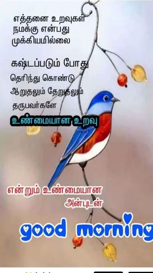 Доброе утро !!! Доброе утро Тамильские цитаты обладают силой и способностью изменить ваш мыслительный процесс. Вдохновляющая цитата с утра способна зарядить вас позитивом, бодростью и мотивацией на весь оставшийся день. Запуская позитивные мысли прямо с нулевого часа дня; Вы также можете распространять счастье и позитив среди других. Здесь собраны лучшие утренние сообщения и цитаты, которыми вы можете поделиться со своими друзьями, коллегами и членами семьи. Начните свой день с добрых утренних тамильских цитат и отправьте своим близким.