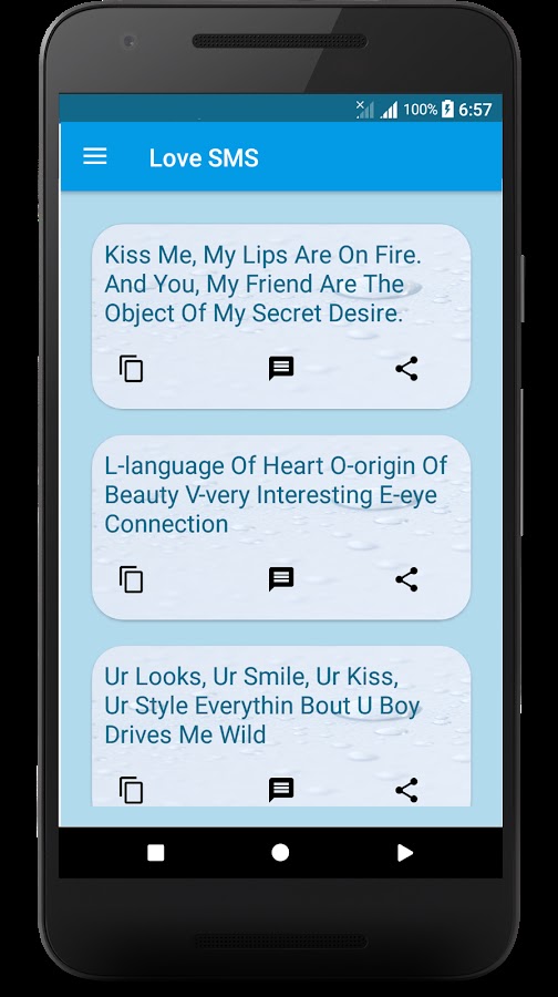 100000+ SMS Messages — это бесплатное приложение, из которого Вы можете получить самые свежие и удивительные коллекции SMS в мире.