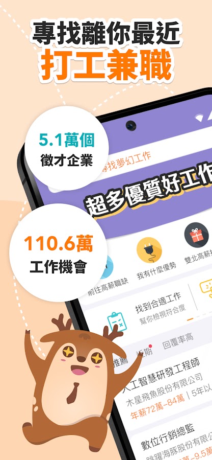 Описание 104工作快找-工作機會多,找工作、找打工兼職的優質求職平台
