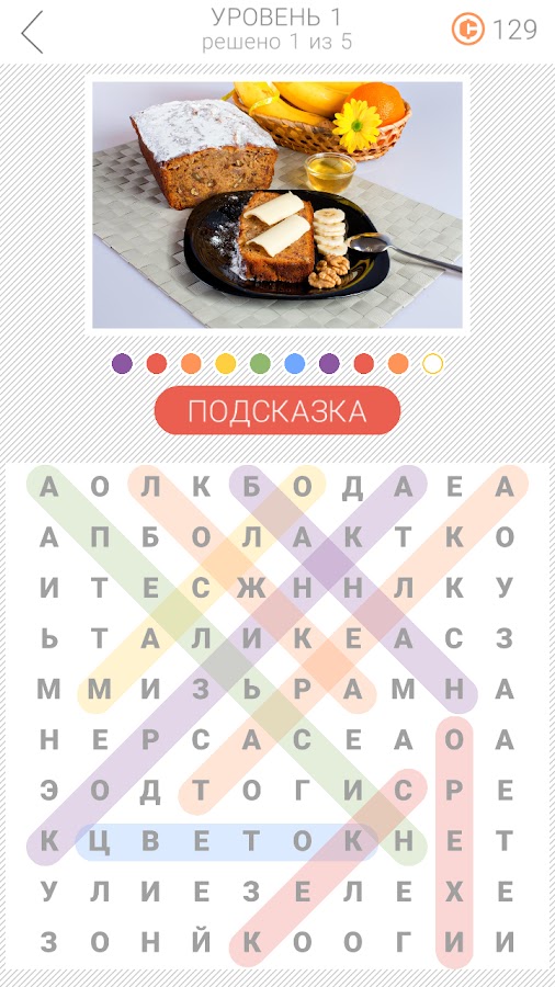 Внимательно посмотрите на фото и найдите слова на игровом поле. Нажмите на фото, чтобы его увеличить. Слова на поле расположены по вертикали, горизонтали и диагонали. Проведите пальцем по слову, чтобы добавить его к найденным словам. Используйте кнопку помощи в случае затруднений.