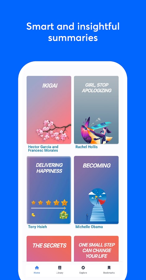 Приложение Резюме книг предоставляет вам ключевые идеи и аннотации в виде краткого изложения ваших любимых книг для чтения. Вы можете рассматривать приложение Summarize как форму для получения обзоров книг и рекомендаций для разных жанров книг. Он дает предложения и краткое содержание аудиокниг самых продаваемых книг на рынке, как вы найдете в приложении для предложений книг.