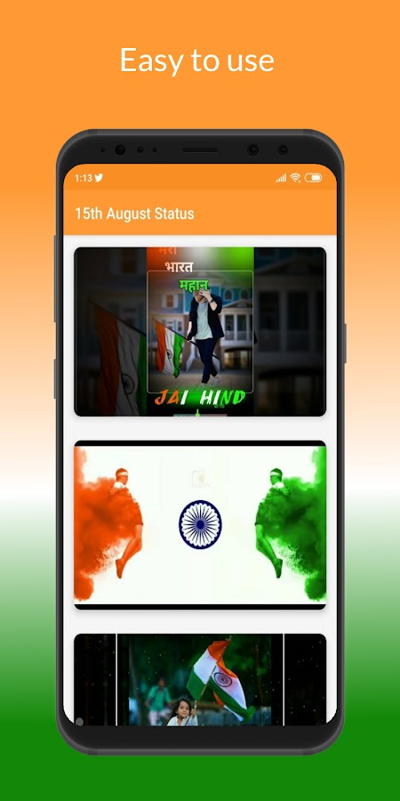 В этом приложении вы также можете смотреть полноэкранный статус видео 15 августа с помощью видеоплеера Awesome.