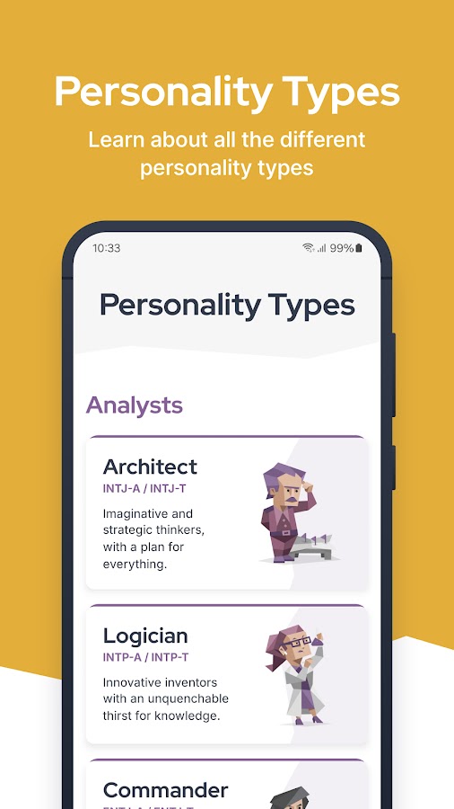 Загрузите 16Personality прямо сейчас, определите свой тип личности и сделайте первый шаг к пониманию своего истинного «Я».
