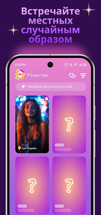 🔥 Открывайте новые знакомства с Kasual Карты: переверните карту, чтобы увидеть новый матч. В отличие от привычного свайпа, Kasual добавляет элемент неожиданности в процесс знакомства.