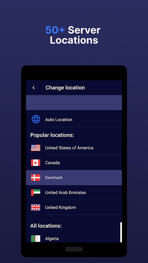 Простое VPN-подключение одним кликом — подключайтесь к самому доступному VPN-серверу одним нажатием.