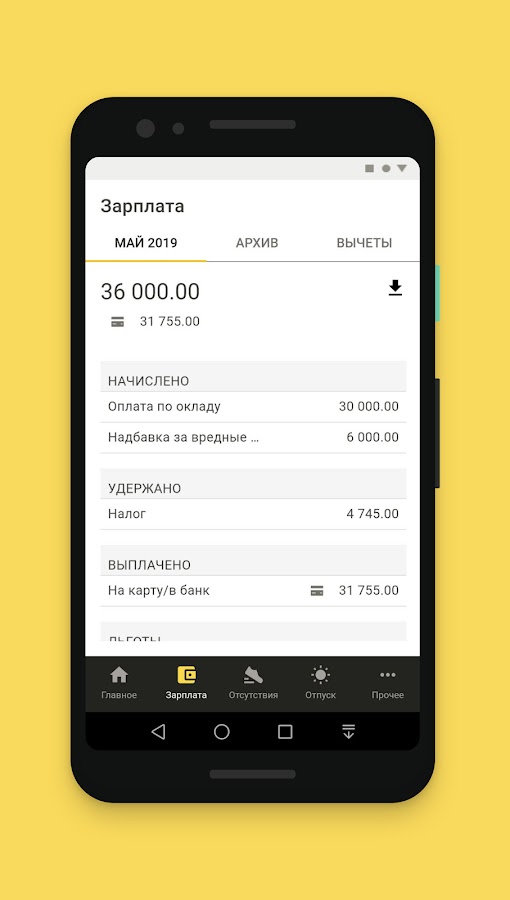 • получить расчетный листок;