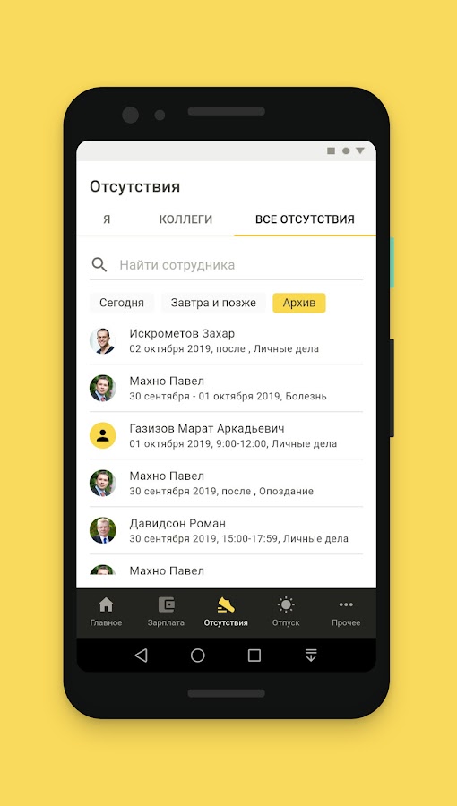 Какие именно из перечисленных функций приложения будут вам доступны зависит от решения руководства вашей компании.