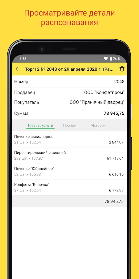 Нужная информация будет извлечена и подготовлена к вводу в программу 1С в удобном виде. Для этого достаточно просто сфотографировать документы и отправить их на распознавание прямо из мобильного приложения!