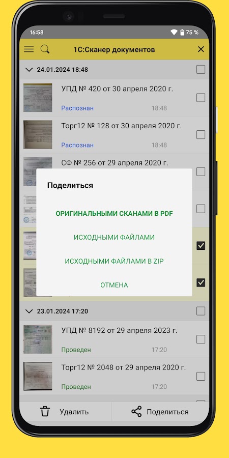 Также вы можете использовать возможности мобильного сканера и распознавания документов без подключения к программе 1С.