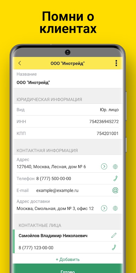 Приложение предназначено для менеджеров по продажам или торговых представителей,