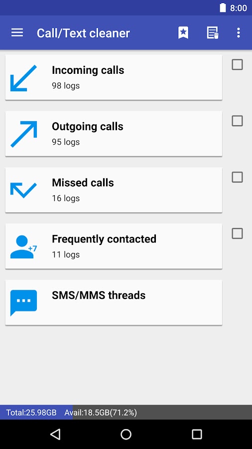 Есть четыре очистителя включенных в это приложение. «Очистка кэша», «Очистка истории», «Очистка журнала Звонков/SMS», «Очистка умолчаний» помогут вам получить больше свободного пространства на внутренней памяти телефона, удалив кэш приложений, файлы данных или поиска/навигации. Если у вас есть приложения для которых назначены действия по умолчанию, то «Очистка умолчаний» поможет удалить эти настройки.