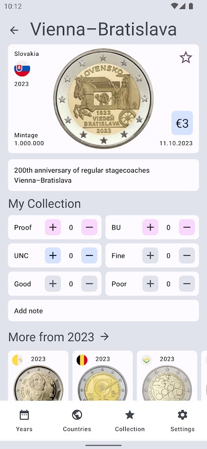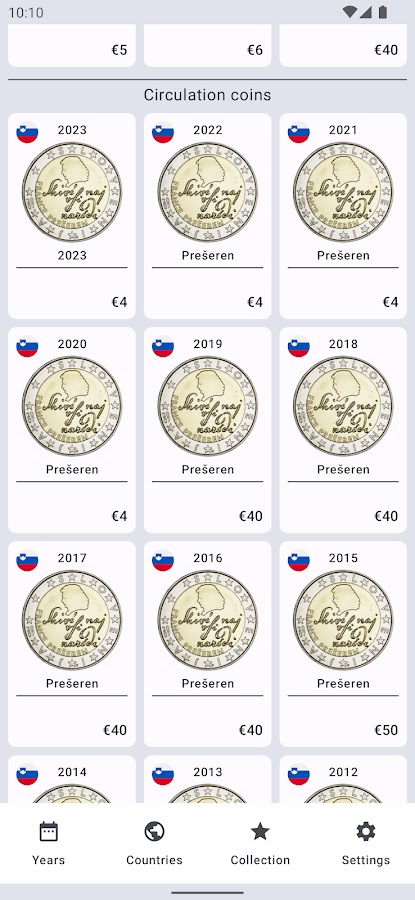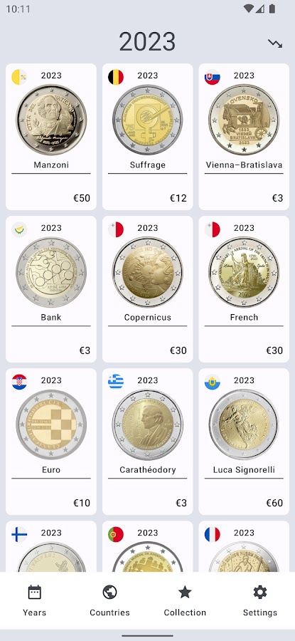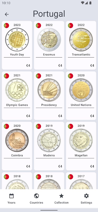 Полный каталог памятных и тиражей монет номиналом 2 евро. 10 лет в Google Play, 100+ обновлений, 1 000 000+ загрузок. Наслаждайтесь 😎