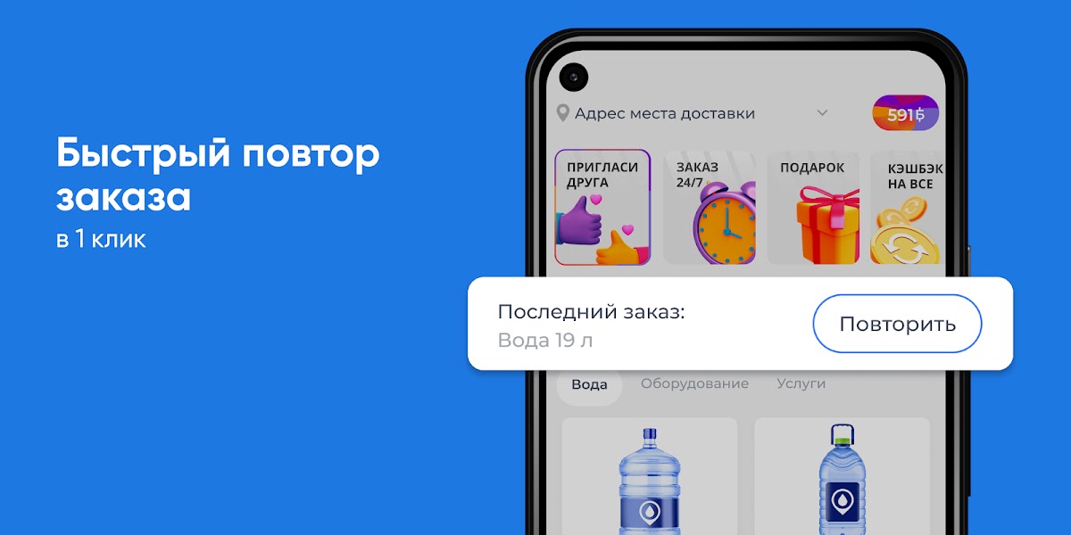 Скачайте приложение Вода 202 на свой смартфон и делайте заказ воды 24/7. Вы сможете повторять заказ нажатием одной кнопки, видеть всю историю покупок и быть в курсе всех акций компании.