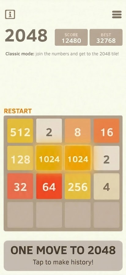 С этими ‘простыми’ правилами, вам понадобится заработать как можно больше очков, и постараться заработать 2048 очков и более, именно поэтому игра и получила такое название. Не думайте, это будет не так просто!