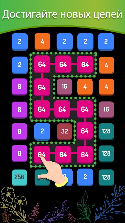 — Получите более высокие числа, когда вы объедините несколько одинаковых чисел вместе.