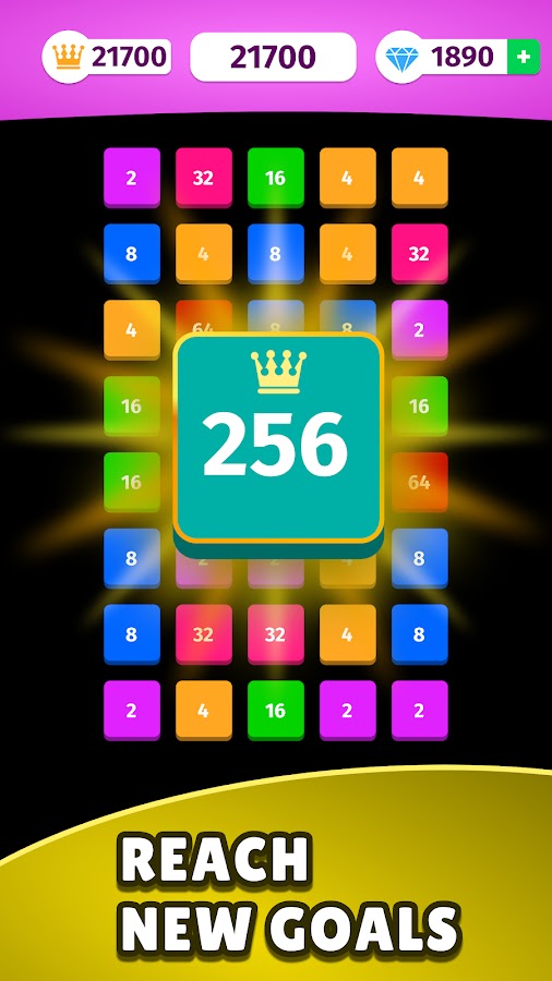 Сопоставляйте блоки, чтобы побить свой рекорд и собирать новые блоки от 2 до 2048 или выше! Объединяйте плитки, чтобы получить Diamond Block — самый высокий блок.