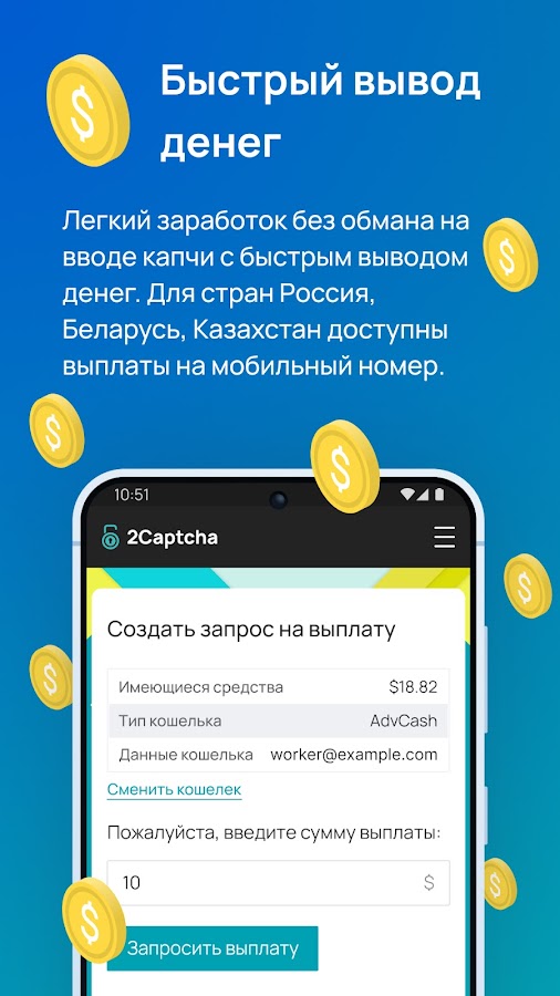Приложение для пользователей RuCaptcha. Для работы в приложении у Вас должен быть аккаунт RuCaptcha.com