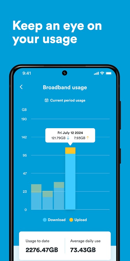 Узнайте, сколько интернета вы используете, с помощью простых графиков и ежедневной статистики. В этом замечательном приложении вы найдёте инструменты для диагностики распространённых проблем с Wi-Fi и услуги, которые помогут вам оплачивать услуги.