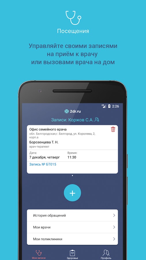 Мобильное приложение 2dr.ru – это личный кабинет пациента.