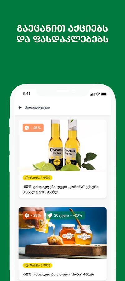 В приложении вы найдете последние акции, предложения, скидки и использовать карты лояльности.