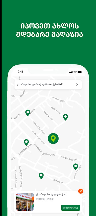 • легко находить адреса ближайших или 2-шаговых предпочтительных магазинов на карте;