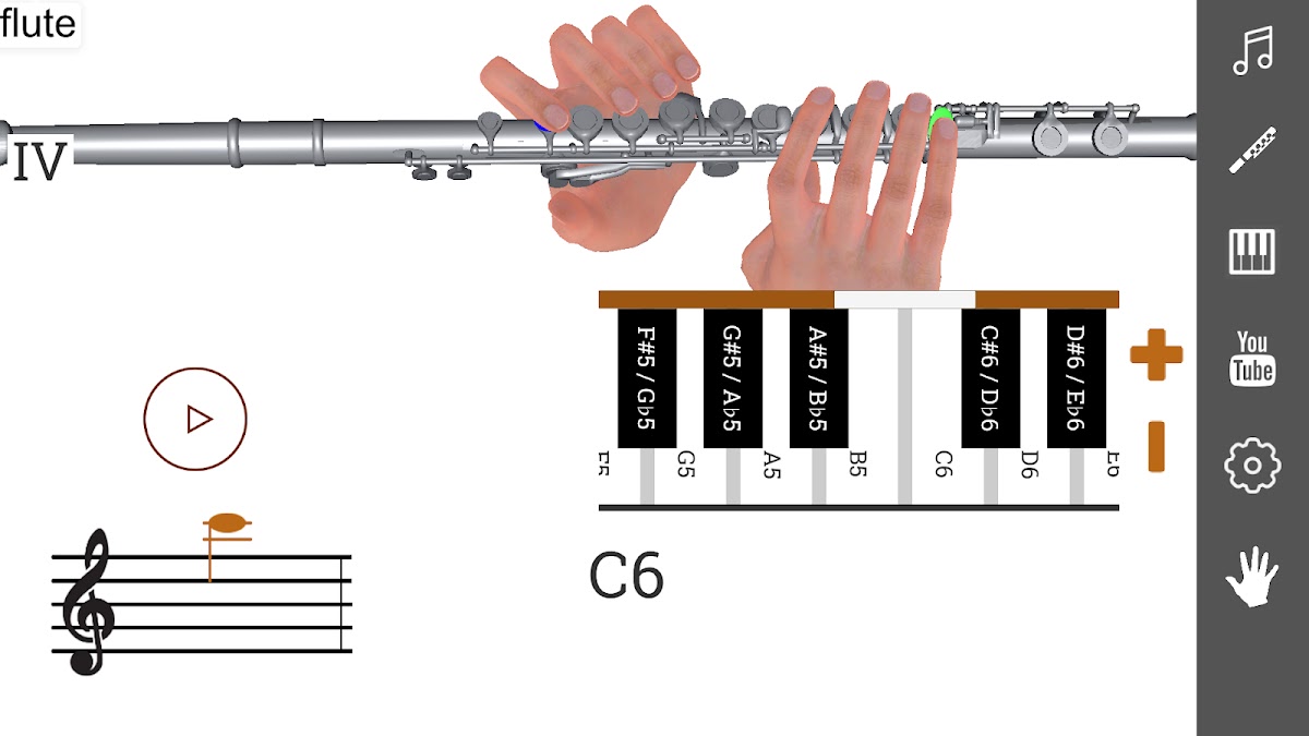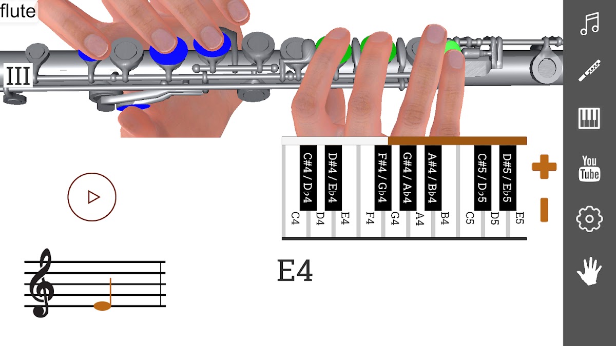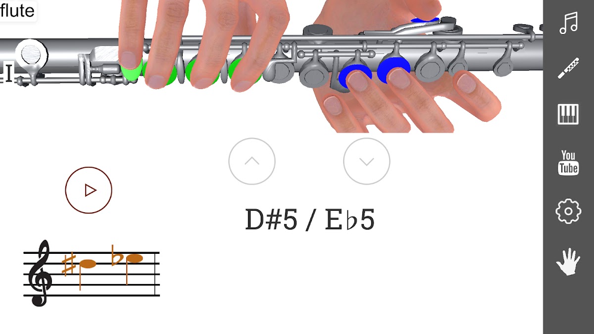 3D Аппликатура Флейты — Как Играть на Флейте покажет вам расположение пальцев на инструменте. Вы узнаете как играть на флейте каждую ноту. Присутствует демонстрация 3D модели. Существует раздел уроки флейты. Можно выбрать разные системы обозначения нот, разные типы и виды флейт: пикколо, флейта, альтовая и басовая. Поперечная флейта. Можно услышать звучание каждой ноты.