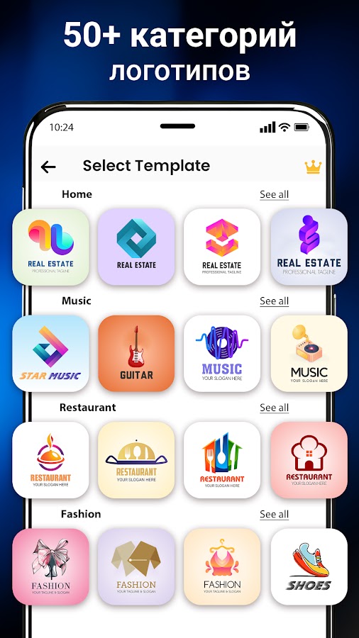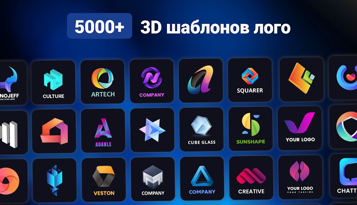🎨 Создавайте профессиональные логотипы за считанные минуты Наш конструктор логотипов позволяет вам создать визуальную айдентику, которая говорит сама за себя. Благодаря огромной библиотеке тем, стикеров и типографики каждый может создать выдающийся 3D-логотип, который выглядит так, будто его сделал профессионал.