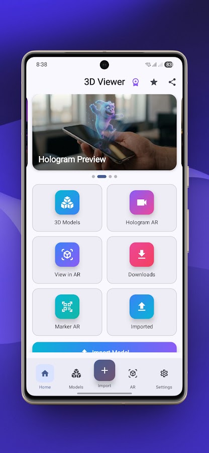 Скачайте приложение 3D Viewer Pro — AR & Hologram для Android бесплатно - последняя версия (8.1.0) уже доступна для установки на ваш телефон или планшет.