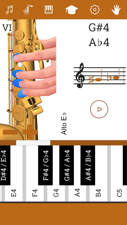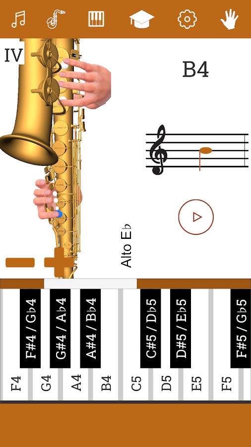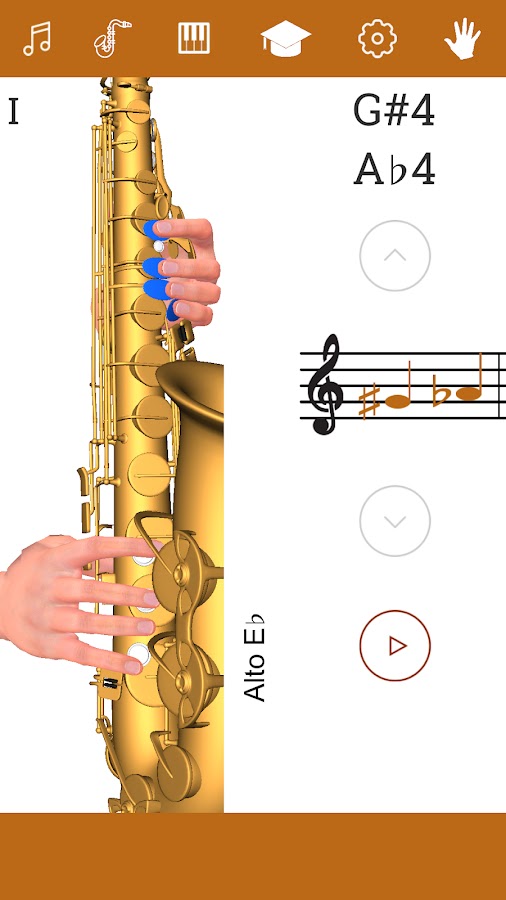3D Аппликатура Саксофона покажет вам расположение пальцев на инструменте. Вы узнаете как играть на Саксофоне каждую ноту. Присутствует демонстрация 3D модели. Существует раздел где вы найдёте видео уроки саксофона. Можно выбрать разные системы обозначения нот, разные типы и виды Саксофонов: Саксофон-сопрано B (си-бемоль), Саксофон-альт Es (ми-бемоль), Саксофон-тенор B (си-бемоль), Саксофон-баритон Es (ми-бемоль).