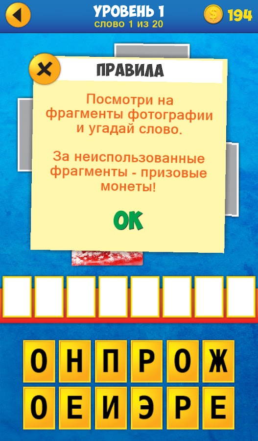 • Фото открываются по одному. Угадай слово открыв меньше картинок и заработай больше монет!