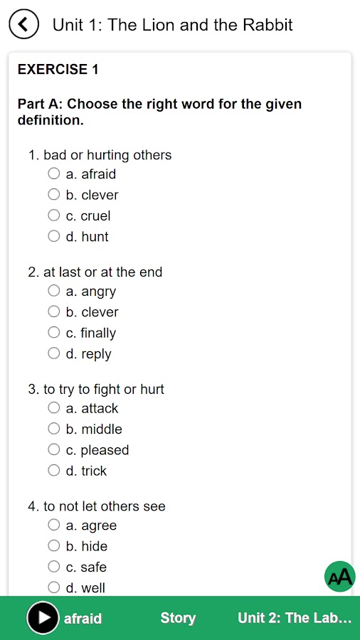 Задания по «4000 основных английских слов» специально разработаны с учетом важных условий обучения. Во-первых, слова вводятся с использованием определений предложений и примера предложения. Действия, которые следуют в разделах, побуждают учащихся вспомнить значения и формы слов. Некоторые упражнения также заставляют учащихся задуматься о значении слов в контексте предложения — предложения, отличного от предложений, которые встречаются во введении слов. Более того, каждый блок заканчивается рассказом, содержащим целевые слова. Читая рассказ, учащиеся должны вспомнить значения слов и адаптировать их к контексту рассказа. Такие упражнения помогают учащимся лучше понять общее значение данного слова, которое подходит для различных целей.