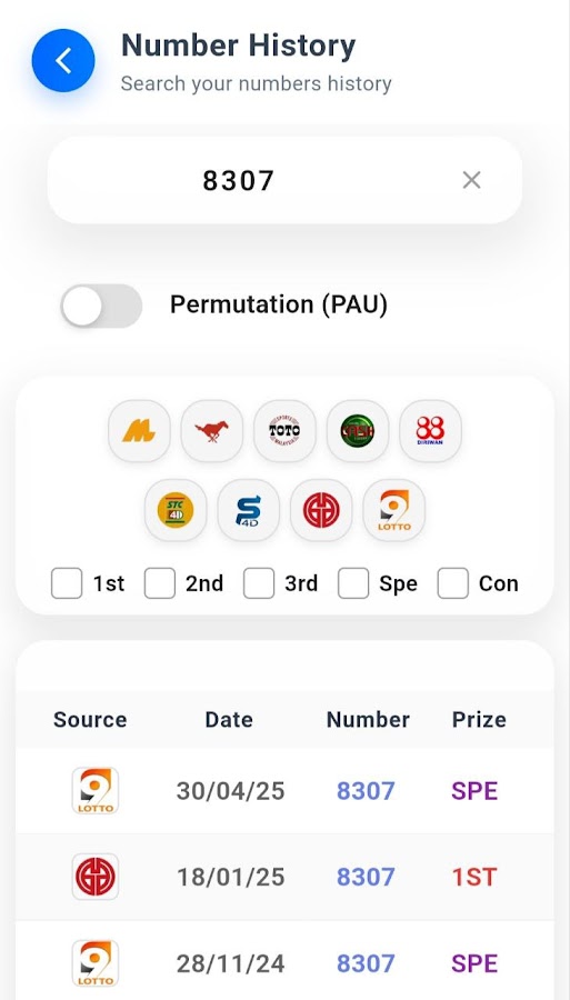 • Быстрый и стабильный доступ к результатам розыгрышей в режиме реального времени 4D и ежедневные обновления результатов 4D.