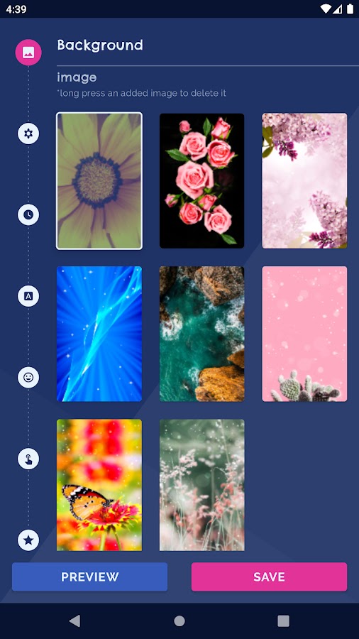 Вы можете выбрать один из множества HD-фонов или добавить свои собственные изображения! Вы можете настроить автоматическую смену фона с помощью волшебного прикосновения!