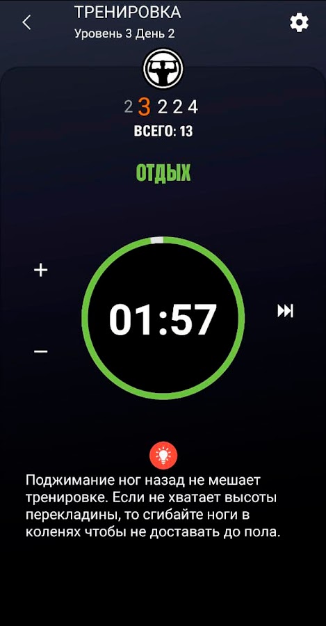Приложение 50 Подтягиваний включает в себя следующий функционал: