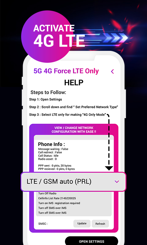 ✔ Откройте настройку «5G 4G Force LTE» в приложении.
