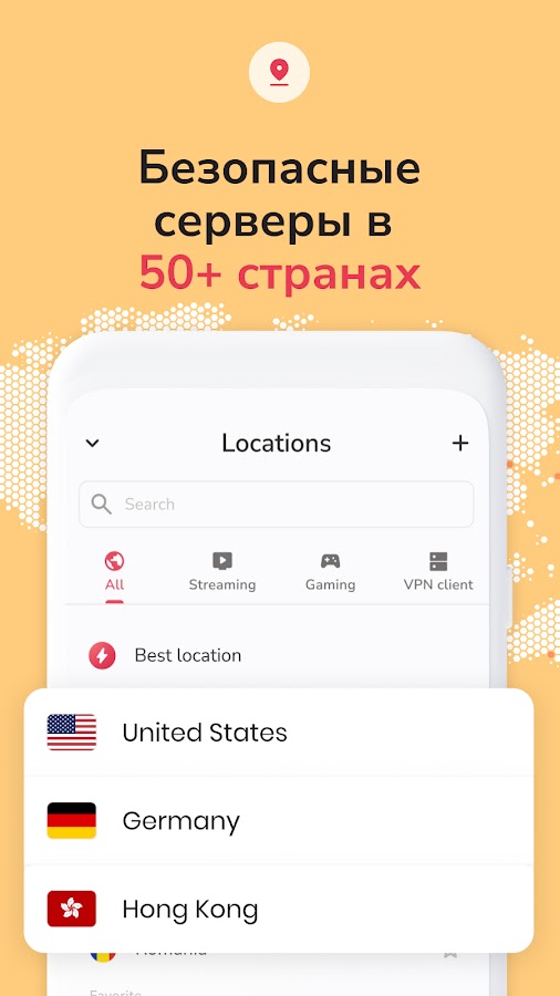 🗺️ Исследуйте мир: Делайте свой выбор из широкого ассортимента 50 локаций по всему миру, включая Соединенные Штаты, Великобританию, Японию, Германию, Индию, Австралию, Южную Корею, Сингапур, Канаду и Ирландию. Разрушайте барьеры и разблокируйте контент, ранее недоступный в вашем регионе. Быстрый впн сервис к вашим услугам.