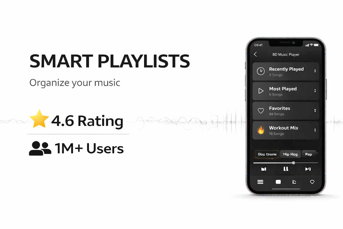8D Music Player — лучший, простой и на 100% бесплатный музыкальный проигрыватель для Android для воспроизведения песен. Его исключительные функции делают его одним из лучших MP3- и аудиоплееров в Play Store для воспроизведения музыки с эквалайзером, усилителем басов и очень хорошей альтернативой музыкальному проигрывателю по умолчанию для таких любителей музыки, как вы.