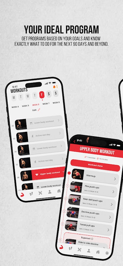 Загрузите приложение 90 Day Challenge и выберите из более чем 45 потрясающих программ тренировок, созданных специально для вас! Любите ли вы заниматься спортом дома, ходить в спортзал или гулять на свежем воздухе, каждый найдет что-то для себя. Вы можете поднимать тяжести, использовать тренажеры, выполнять упражнения с собственным весом или комбинировать эти упражнения. Установите свои собственные цели: нарастить мышечную массу, стать сильнее, сбросить лишние килограммы или набрать массу. Это очень просто и весело, отлично подходит как для новичков, так и для опытных людей.