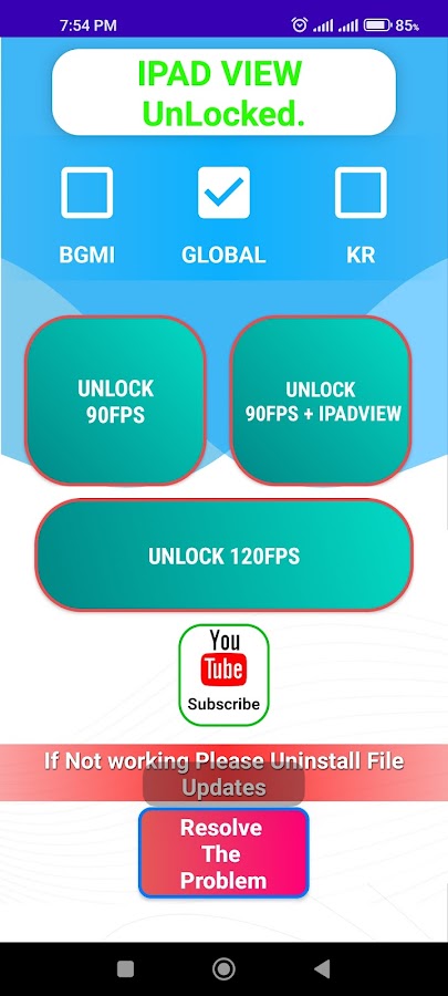 Это приложение включает режим просмотра на iPad для слабых мобильных устройств. Разблокируйте 90 кадров в секунду или 120 кадров в секунду, или оба режима, с помощью режима просмотра на iPad для любого устройства. Поддерживает все версии Android.