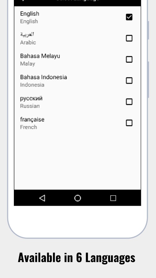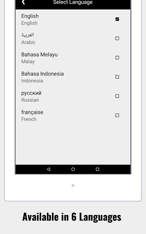 • Наше приложение также поддерживает арабский, малайский и индонезийский языки