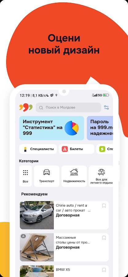 Скачайте приложение 999.md — Доска Объявлений для Android бесплатно - последняя версия (73.03) уже доступна для установки на ваш телефон или планшет.