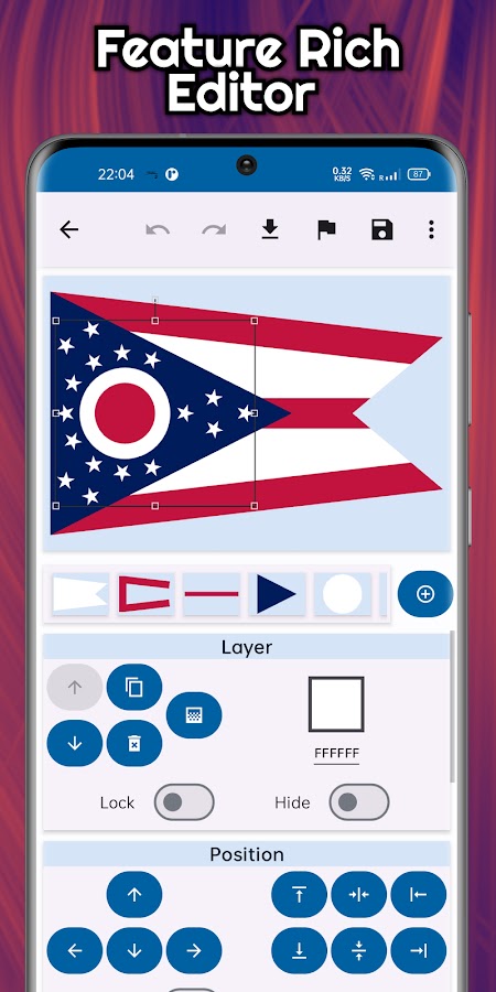 Станьте создателем флагов класса A+ с помощью A+ Flag Maker, идеального приложения для любого дизайнера или редактора флагов!