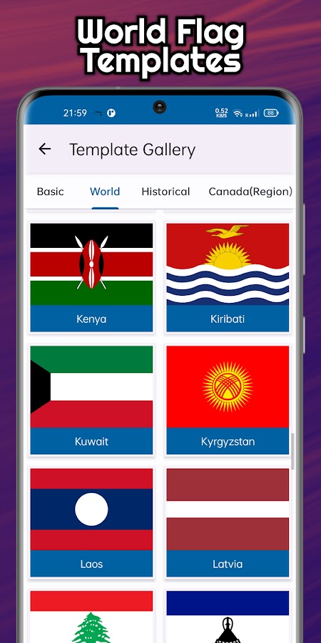 Создание с нуля или шаблонов: начните с нуля или выберите один из более чем 1000 шаблонов, включая мировые флаги, исторические флаги и региональные флаги.
