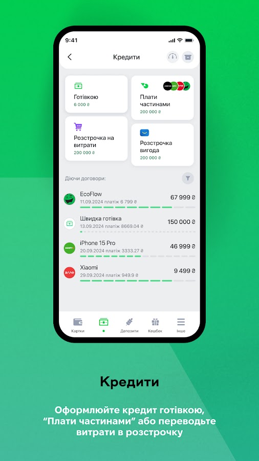 5 минут, три простых шага — и вы получите карту без посещения отделений с кредитным лимитом до 200 000 грн и льготным периодом до 62 дней.