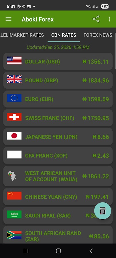 Мгновенные курсы черного рынка: Получайте курсы доллара к найре, евро к найре, фунта к найре и более чем 165 мировых валют, обновляемые в режиме реального времени каждый час непосредственно с оживленного черного рынка Нигерии. Будьте на шаг впереди и извлекайте выгоду из прибыльных курсов.