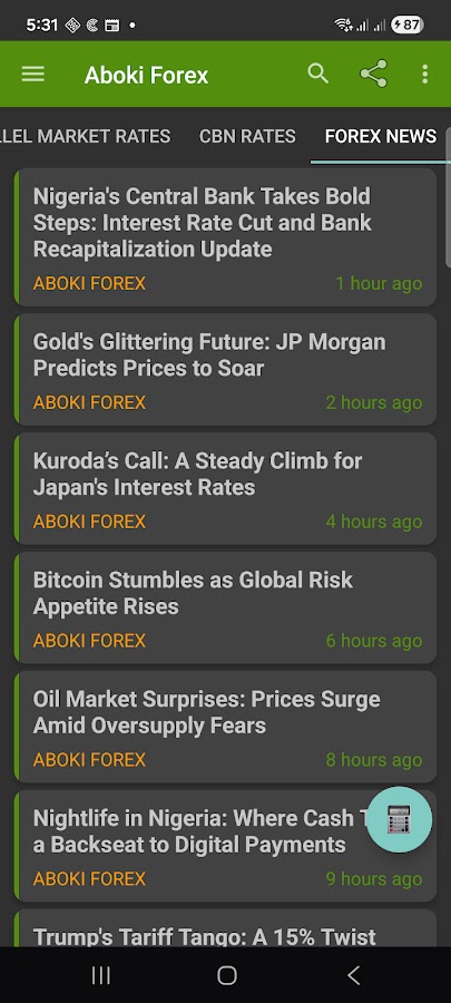 Присоединяйтесь к миллионам нигерийцев, которые доверяют Aboki Forex для принятия обоснованных финансовых решений. Скачайте приложение сегодня и откройте для себя мир финансовой свободы!