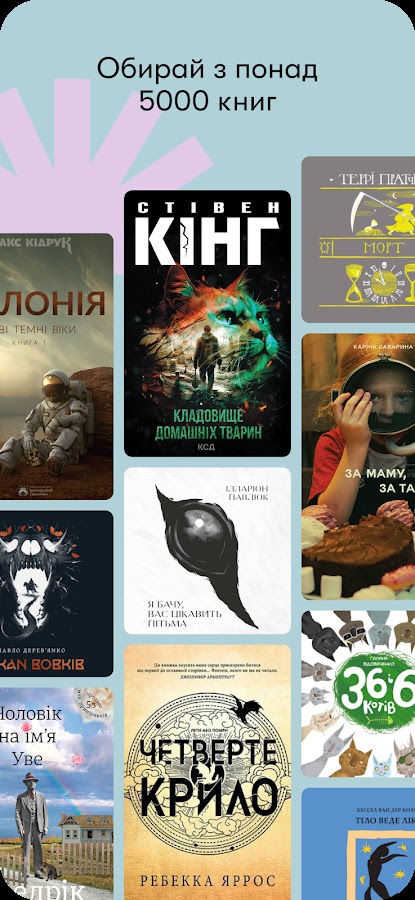 В приложении доступно уже 900+ аудиокниг и 5000 электронных книг на украинском языке, в том числе эксклюзив от издательств. Ассортимент книг постоянно обновляется.