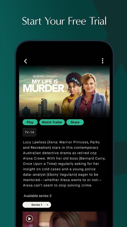 Смотрите захватывающие детективы, где бы вы ни находились! Для начала скачайте приложение Acorn TV и оформите 7-дневную бесплатную пробную версию.